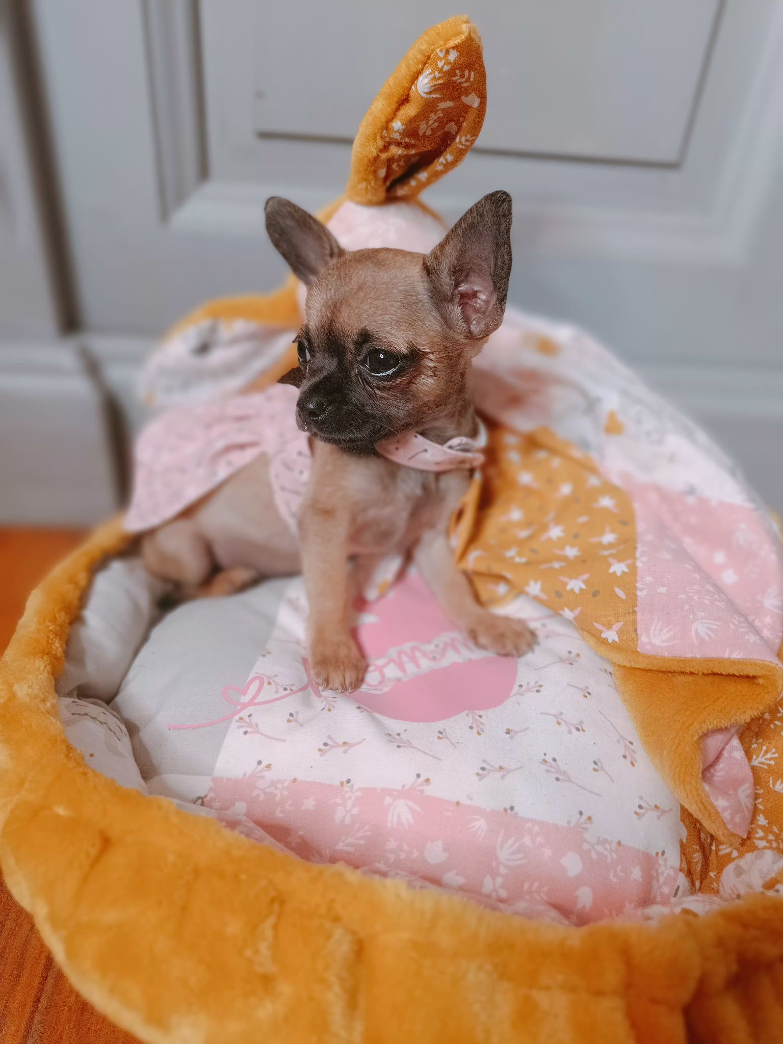 Et pour Uguette j’ai décidé de continuer le projet “Uguette & Co”. Nous avons adopté un nouveau toutou, un petit chihuahua prénommé, lorsque nous l’avons adopté, Uguette, un signe peut-être. Nous l’avons renommé Pomme, un tout petit chihuahua à croquer, Pomme lui va à merveille.